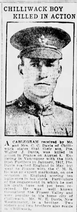 Son of Mr. C. C. Davis and Mrs. S. M. Davis, of Chilliwack, British Columbia.