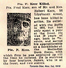 Son of Robert and Elizabeth Kerr, of 959, Dufferin St., Toronto, Ontario.