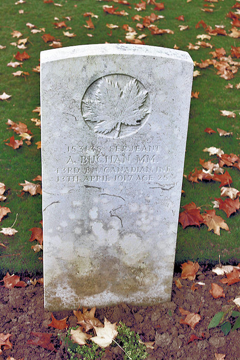 Son of Mrs. Isabella Buchan, of Mosside, Monedie, Brideswell, Huntly, Scotland.