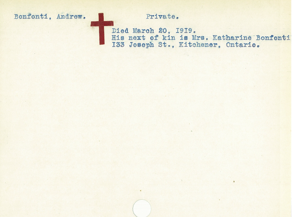 Son of Mr. and Mrs. P. Bonfonti, of 133, Joseph St., Kitchener, Ontario.