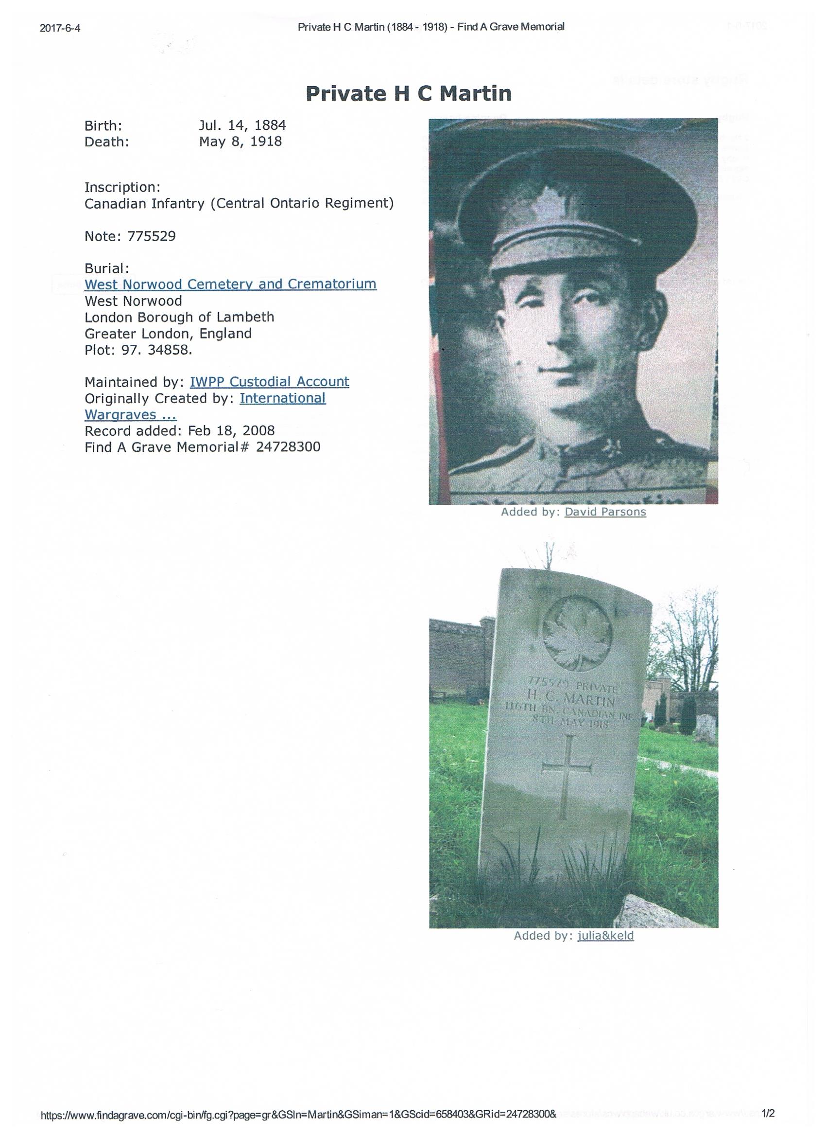 Digital gallery of Private Herbert Charles Martin
