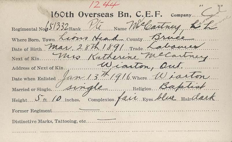 Son of Leonard H. and Katherine Macartney, of Wiarton, Ontario.