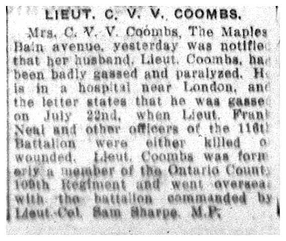 Husband of Jessie Coombs, of 50, The Maples, Bain Avenue, Toronto.