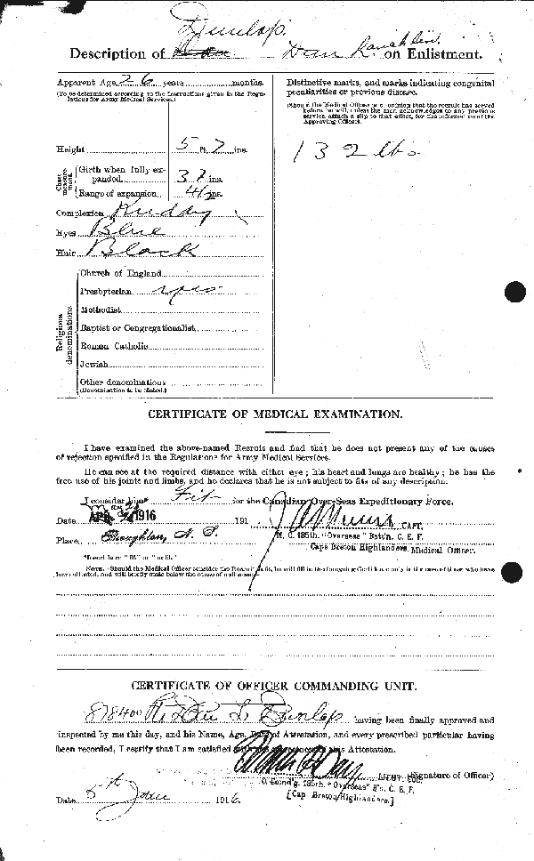 Digital gallery of Private Daniel Lauchlin Dunlop