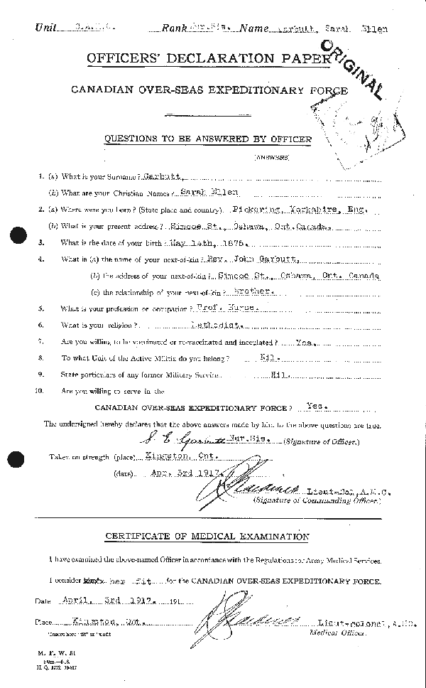Digital gallery of Nursing Sister Sarah Ellen Garbutt