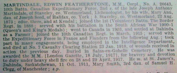Son of Joseph Anthony and Mary Ann Martindale, of Staveley, Westmorland; husband of Mary Smith Martindale, of 1, Lynnslack, Arnside, Westmorland, England.