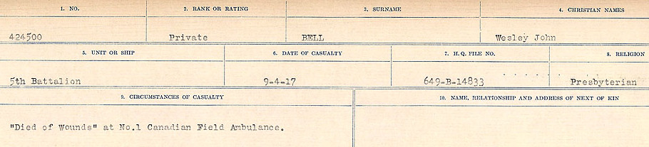 Son of Alfred J. and Amelia A. Bell, of Minnedosa, Manitoba.
