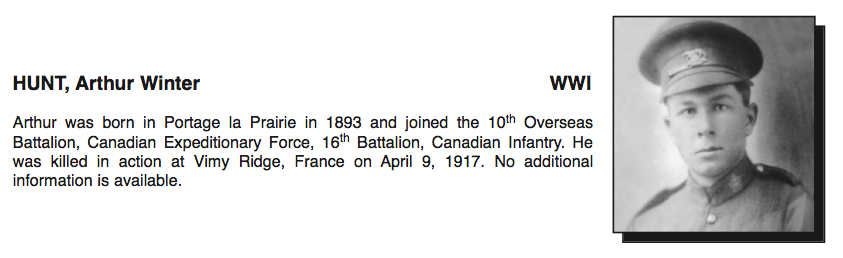 Brother of Private Frank Hunt, who died on February 7, 1917, while serving with the Canadian Infantry (Manitoba Regiment).