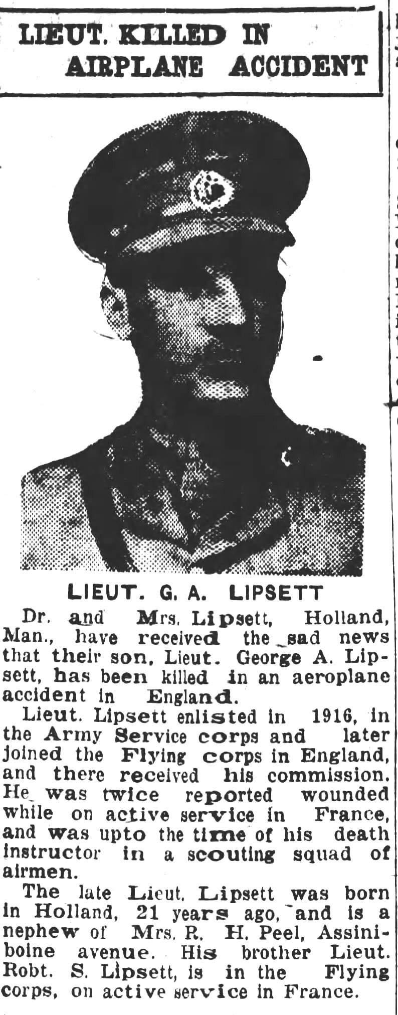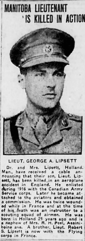 Son of Dr. John H. and Emily E. Lipsett, of Holland, Manitoba.