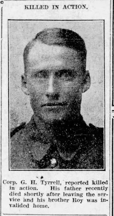 Son of Henry and Harriett Tyrell, of 156, Turner St., Ottawa, Ontario.