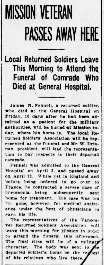 Son of the late John and Bessie Fennell, of Mission City, British Columbia.