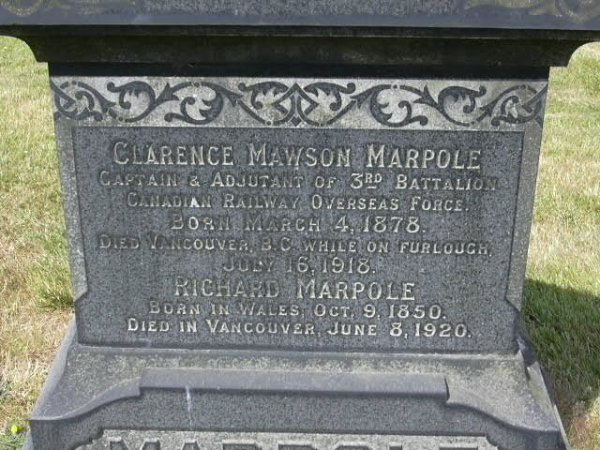 Son of Emmeline R. Marpole, of Assembly Hotel, Seattle, Washington, U.S.A., and Richard Marpole; husband of Mary Gifford Powell (formerly Marpole), of Vancouver. R.G.E.H.