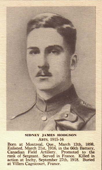 Son of Arthur J. and Emily M. Hodgson, of Montreal, Quebec.