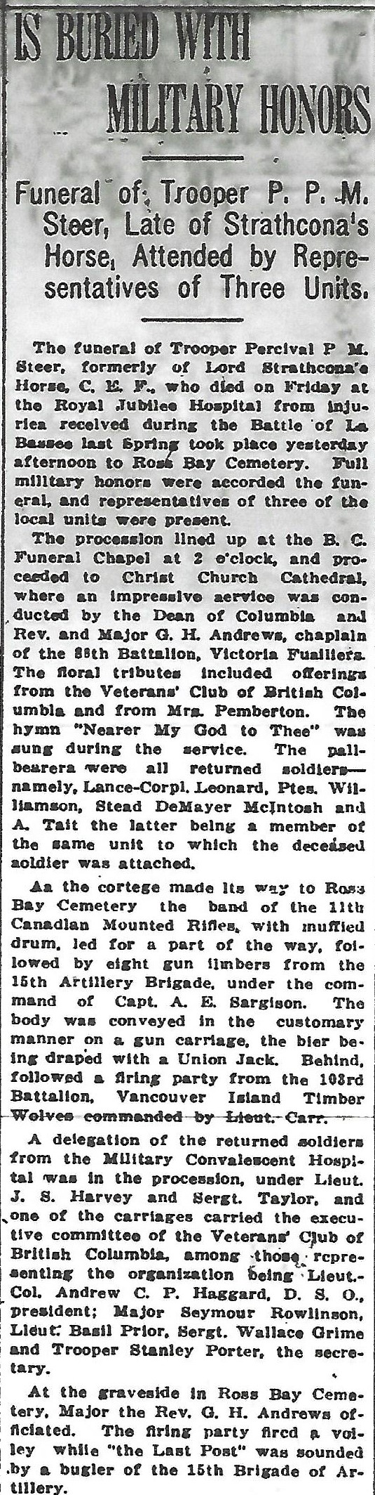 Son of the late John Henry and Lucy Ann Steer (nee Blampey), of Southsea, Hants, England.