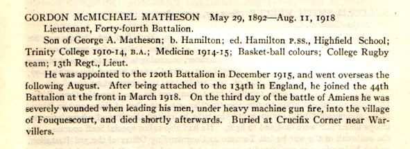 Son of George and Emma Matheson of Hamilton, Ontario.