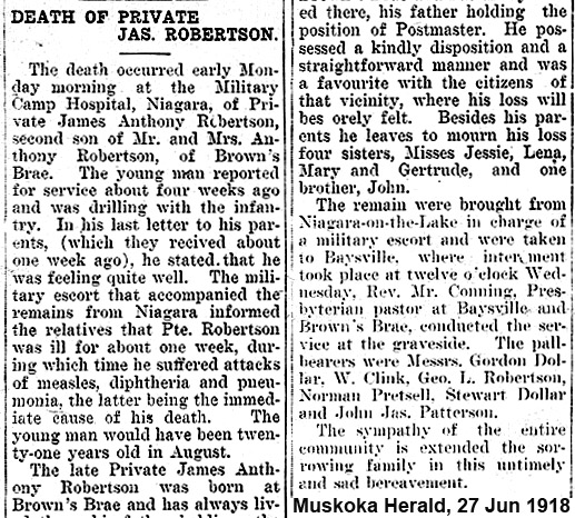 Son of Anthony and Mary A. Robertson, of Brown's Brae, Muskoka, Ont.
