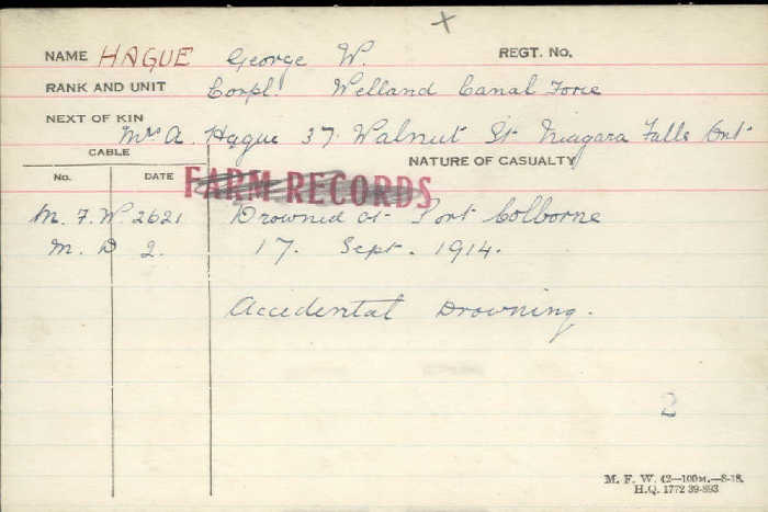 Son of Alberta Hague, of 969, Walnut St., Niagara Falls, Ont., and the late Joseph Hague.