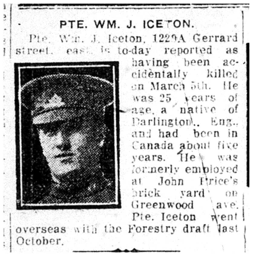Son of Jackson Iceton of Darlington, England. Husband of Mary Ellen Horner (formerly Iceton), of Durham, England.