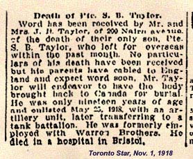 Son of James B. and Elizabeth Ann Taylor, of 200, Nairn Avenue, Toronto, Ont.