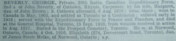 Son of John and Margaret Beverly, of Cottown, Rhynie, Aberdeenshire, Scotland. Husband of Elizabeth S. Beverly of Toronto, Ontario.