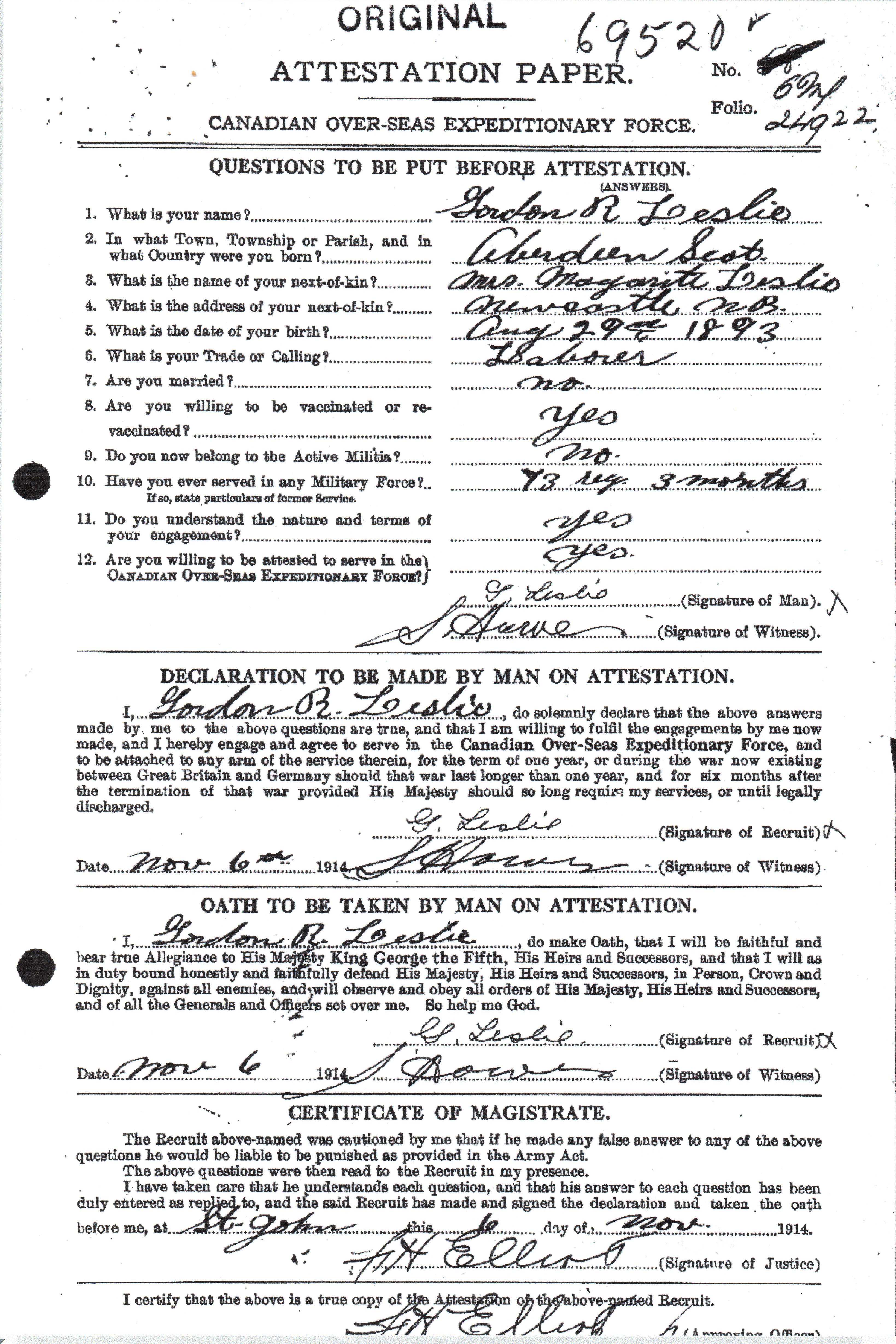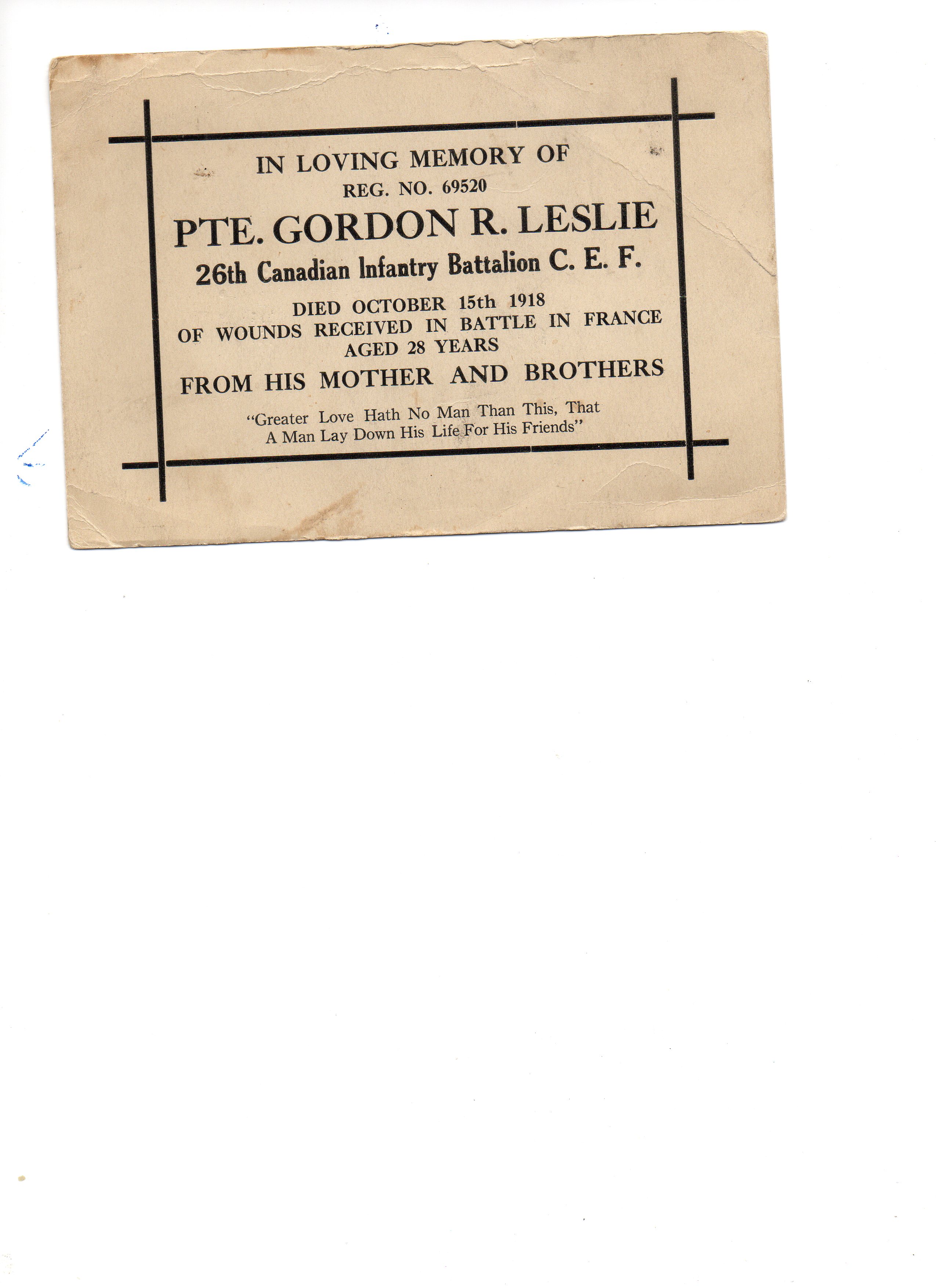 Son of John and Margaret Stables Leslie, of Newcastle, New Brunswick.