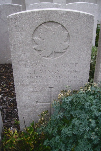 Brother of Lieutenant David Livingstone, who died on October 10, 1918, while serving with the Canadian Motor Machine Gun Brigade and Major Charles Donald Livingstone, who died on October 12, 1916, while serving with the 1st Canadian Mounted Rifles (Saskatchewan Regt.)