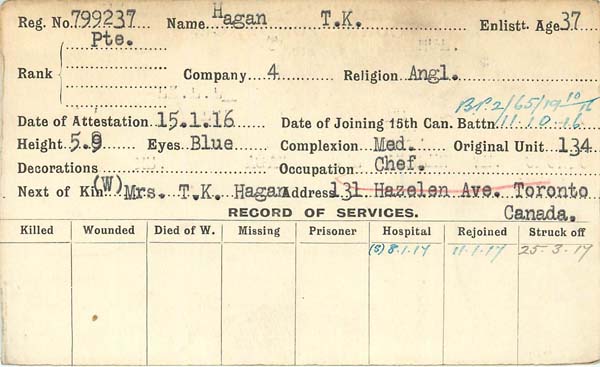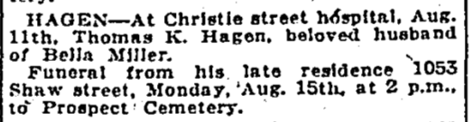 Son of George H. and Annie Hagen, of Toronto; husband of Isabella Hagen, of Toronto, Ontario.