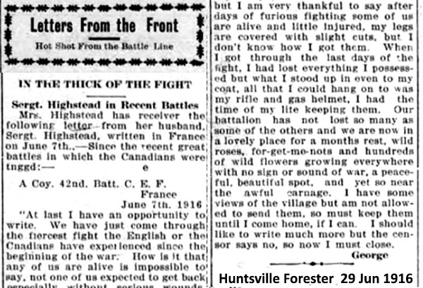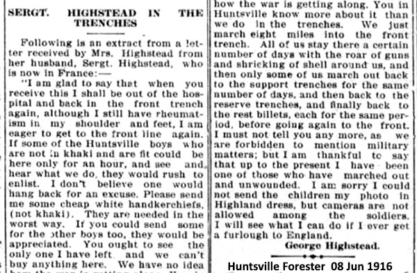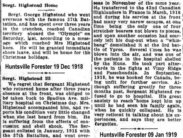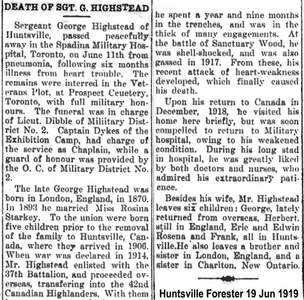 Son of George and Mary Highstead; husband of Rosina Elizabeth Mary Highstead, of Huntsville, Ontario.