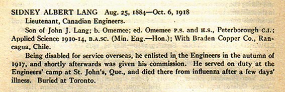 Son of John J. and Millie Annie Lang, of 771, Indian Rd., Toronto, Ont.