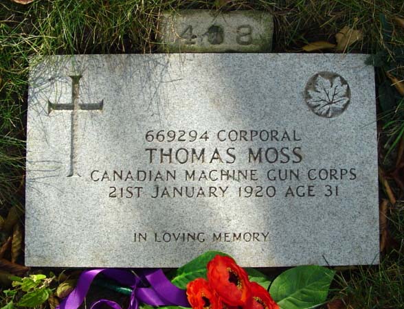 Son of George Moss and Mrs. Moss, of Wigan, Lancs, England. Husband of Florence Moss, of Toronto, Ontario.