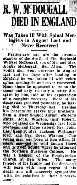 Son of Angus and Margaret Ann McDougall, of Owen Sound, Ontario.