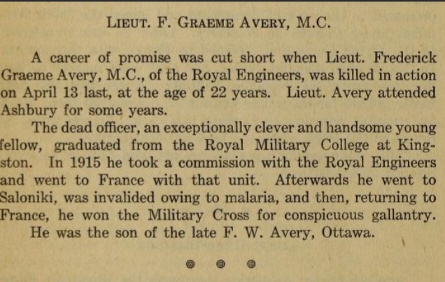 Only son Frederick Wells and Ottilie Avery, of Ottawa, Ontario.