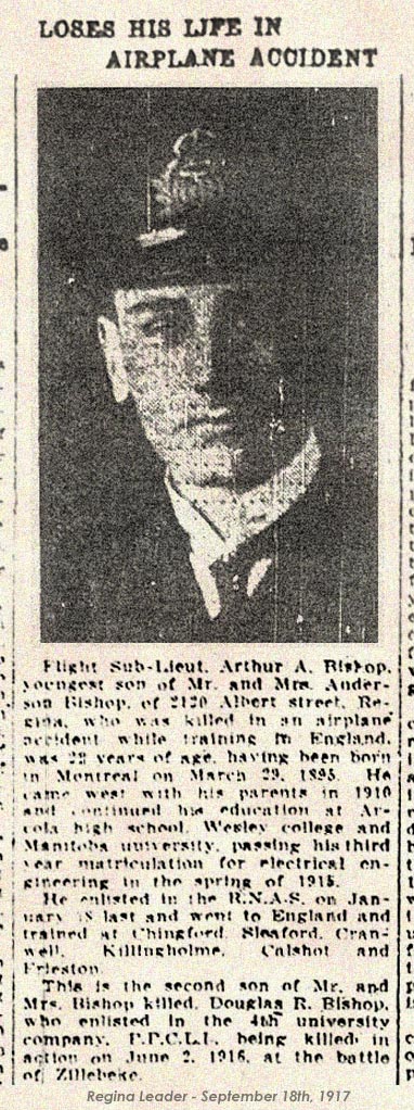 Son of Thomas Anderson Bishop and Emma Reed Bishop, of 2237 Rae St., Regina, Saskatchewan.