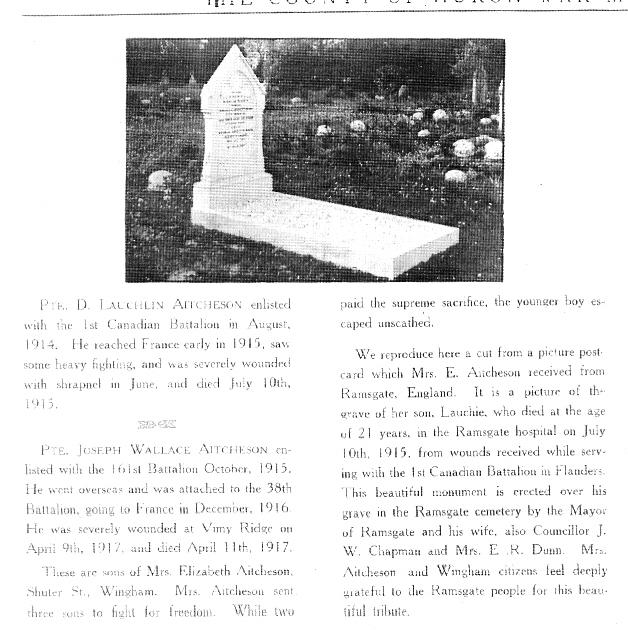 Brother of Private Wallace Aitchison, who died while serving with the Canadian Infantry (Eastern Ontario Regiment).