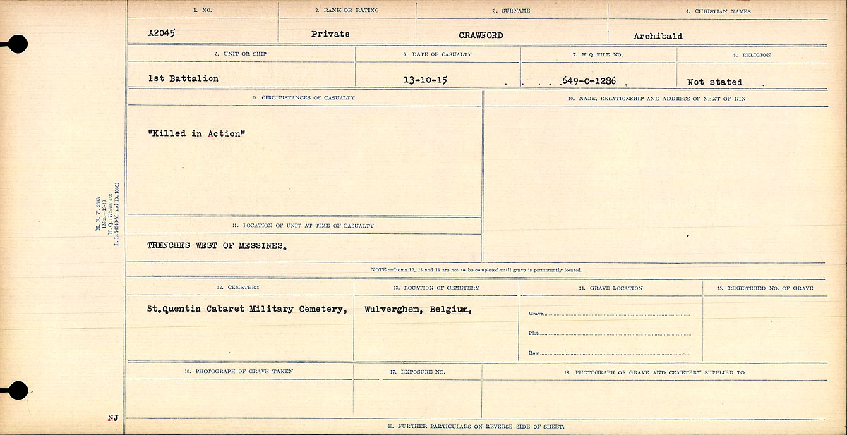 ST. QUENTIN CABARET MILITARY CEMETERY Belgium