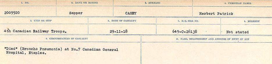 Digital gallery of Sapper Herbert Patrick Casey