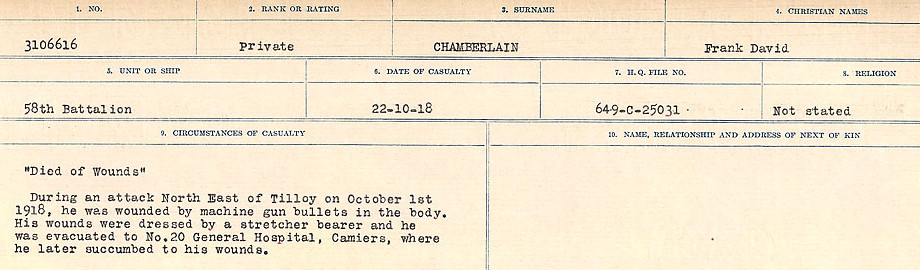 Private Frank Chamberlain