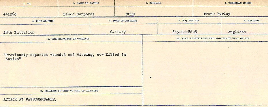 Digital gallery of Lance Corporal Frank Burley Cole