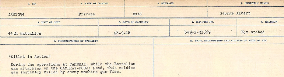 Son of John Spencer Boak and Catherine Boak, of Edwin, Manitoba.