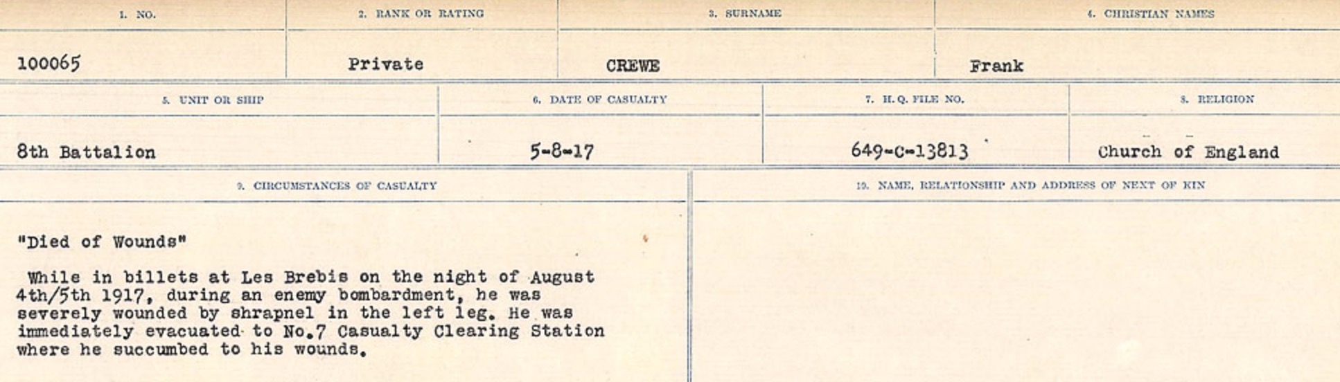 Son of Henry and Mary Anne Crewe, of Great Somerford, Chippenham, Wilts.