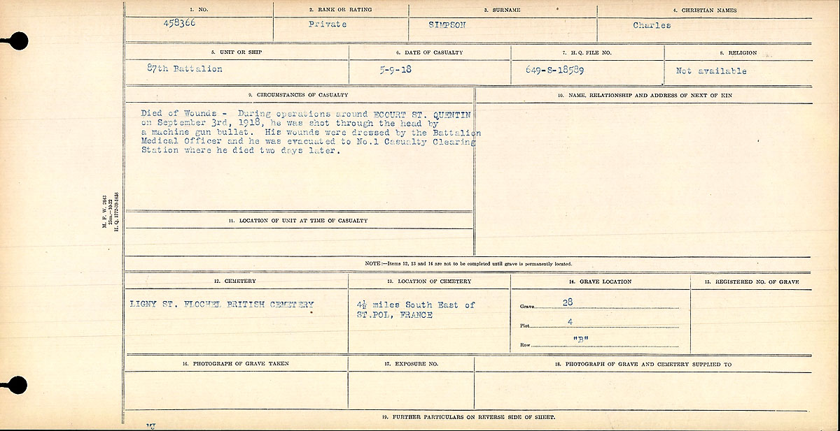 Ligny-St.Flochel is a village about 6.5 kilometres east of St.Pol on the main road to Arras. The distance from Ligny-St. Flochel to Arras is approximately 24 kilometres. The Ligny-St.Flochel British Cemetery is situated to the south of the village on the east side of the road to the village of Averdoingt.