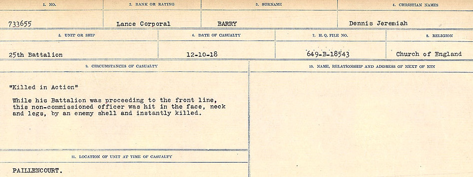 Digital gallery of Lance Corporal Dennis Jeremiah Barry
