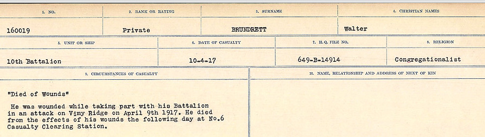 Brother of Second Lieutenant George Frederick Brundrett who died on August 24, 1918 while serving with the Cheshire Regiment.