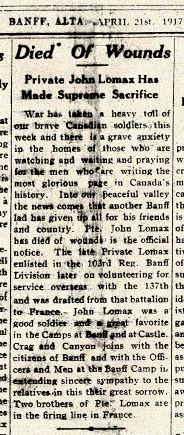 Brother of Private George Lomax, who died on August 24, 1917, while serving with the Canadian Infantry (Alberta Regiment) and brother of Private William Lomax, who died on January 1, 1919, while serving with the Canadian Infantry (Alberta Regiment).