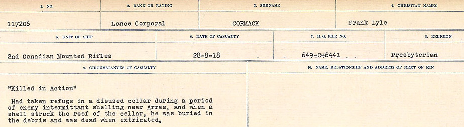 Digital gallery of Lance Corporal Frank Lyle Cormack