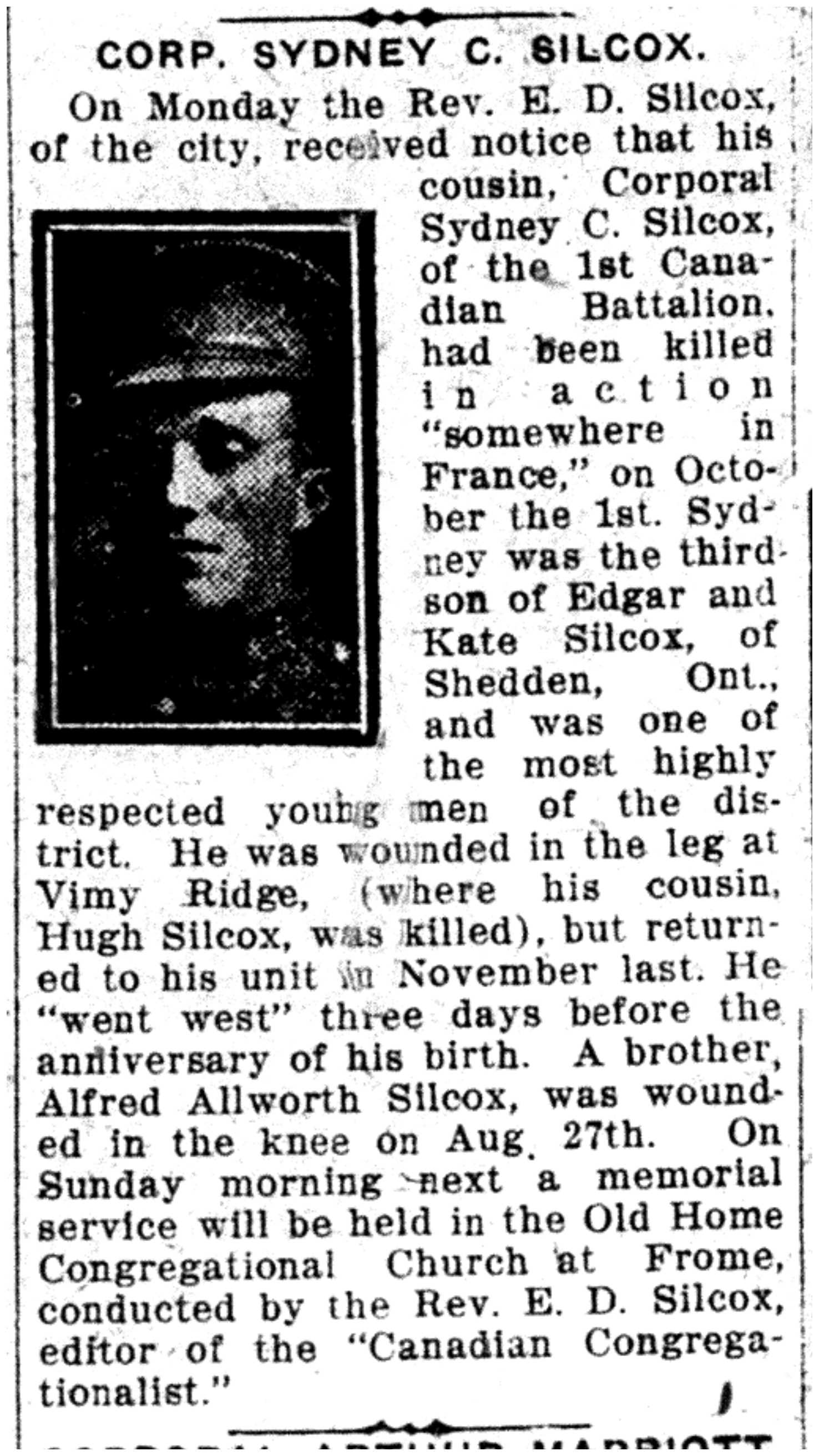 Brother of Private Hugh Alfred Silcox, who died during service with the Canadian Light Horse.