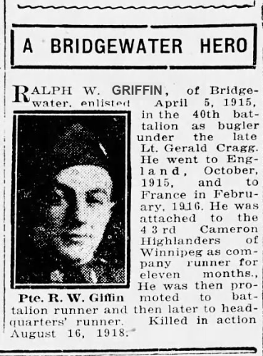 Son of Michael W. and Clara A. Griffin, of Bridgewater, Nova Scotia.