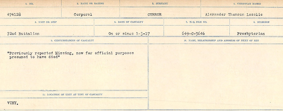 Digital gallery of Corporal Alexander Thomson Lesslie Curror