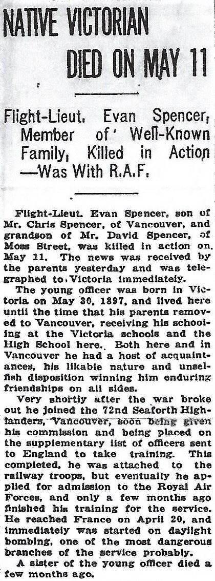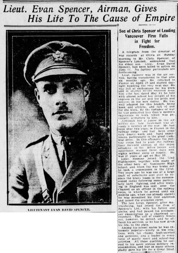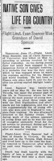 Son of Christopher and Sarah Ellen Spencer, of Vancouver, British Columbia.