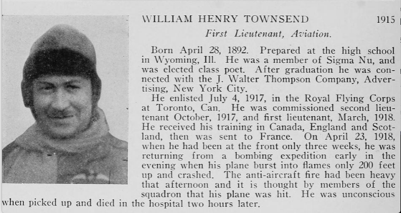 Son of William and Jane E. Townsend, of Wyoming, Illinois; husband of Dorothy D. Townsend, of Cambridge, Massachusetts, U.S.A. Graduate of Dartmouth College, 1915.